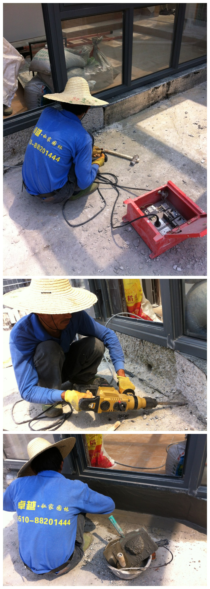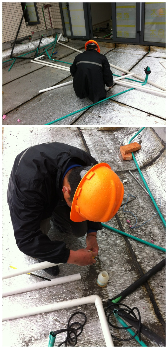 工人們在做樓面整理、把門兩邊的基礎整成對稱的、做防水、基礎水電作者:www.qysmw.cn